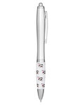 • Retractable curvy plastic barrel ballpoint pen with cow spot stock art comfort grip